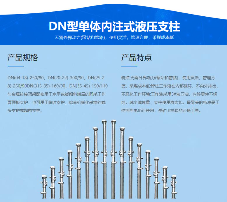 特點:無需外界動力(泵站和管路),使用靈活,管理方便,采煤成本低:降柱工作液在內部循環,不向外排出,不惡化工作環境;工作液采用5#液壓油,內腔零件不銹蝕,減少維修量,支柱使用壽命長。最顯著的特點是工作面斷電仍可使用,是礦山搶險的必備工具。